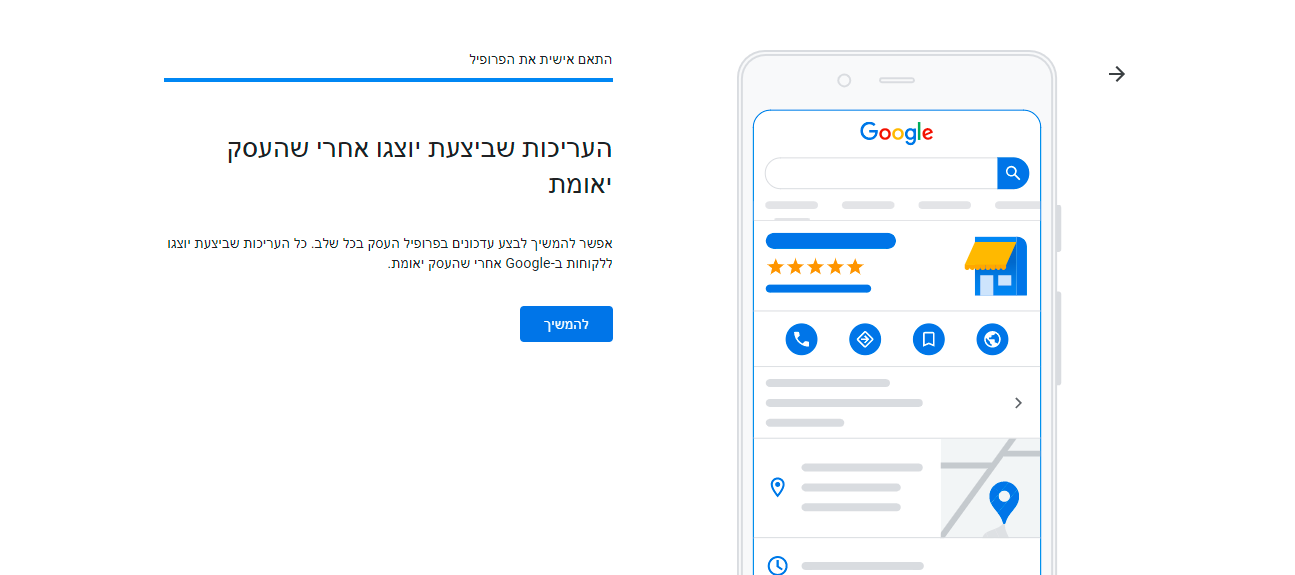 לאחר שהוספנו את הפרטים ובצענו עריכות, יש לאמת את העסק